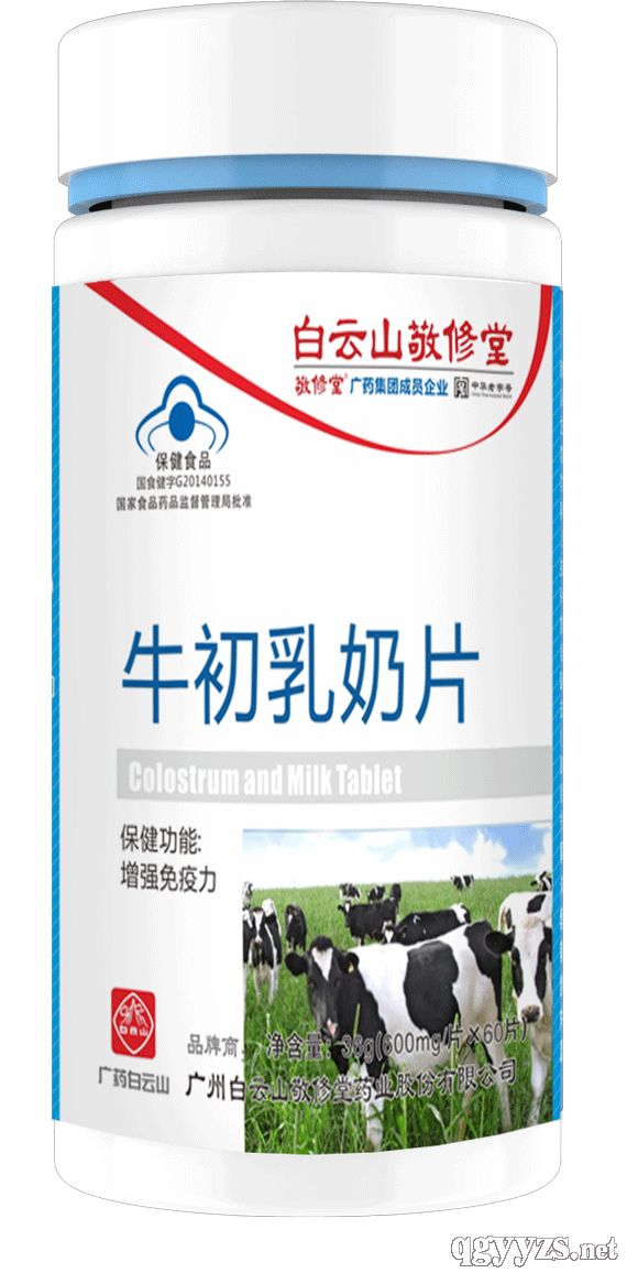 - 白云山敬修堂牛初乳奶片 批准文号: 国食健字G20140155规 格: 600mg*60粒
