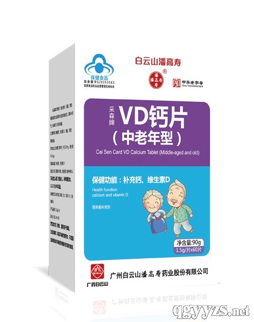 - 白云山潘高寿采森VD钙片中老年型(纸盒) 批准文号: 国食健字G20050583规 格: