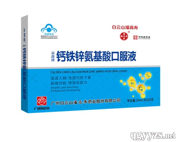 - 白云山潘高寿采森牌钙铁锌氨基酸口服液 批准文号: 国食健字G20060263规 格: 10ml*10支