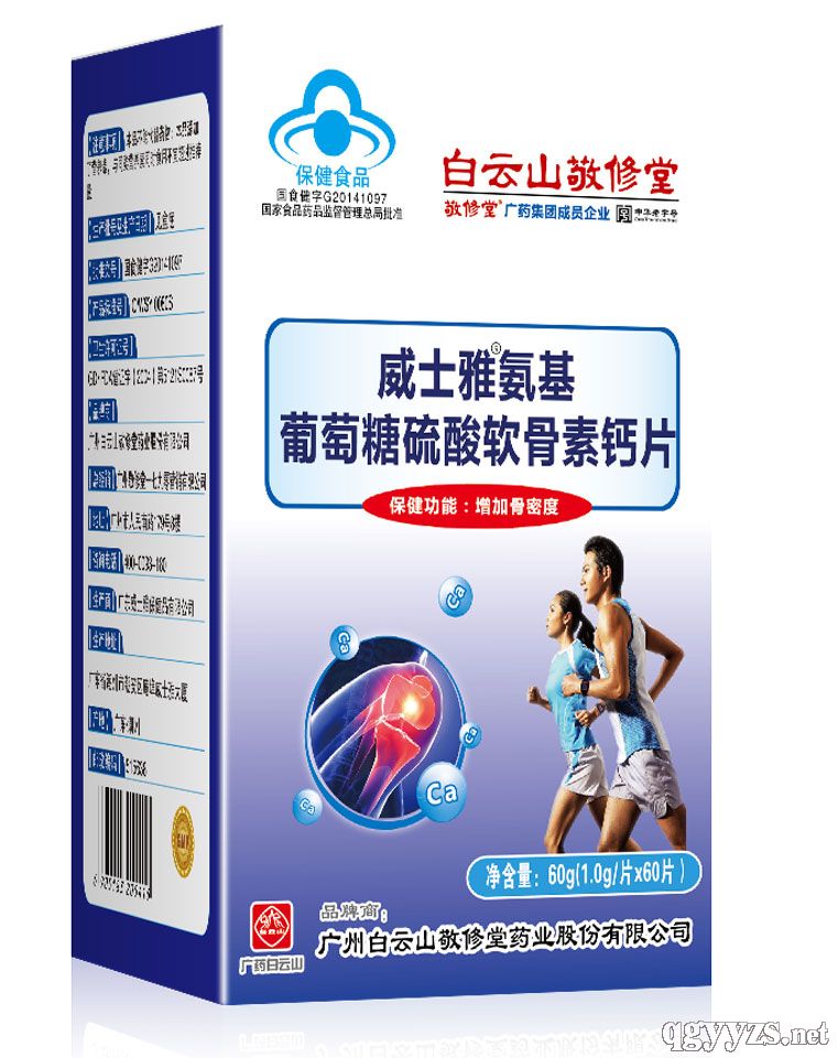 - 白云山敬修堂氨基酸葡萄糖硫酸软骨素钙片 批准文号: 国食健字G20141097规 格: 1.0g/片*60片