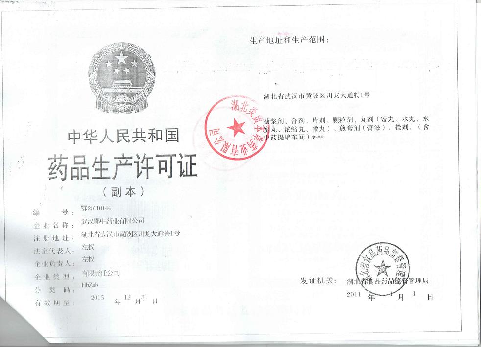 生产范围: 湖北省武汉市黄陂区川龙大道特1号 丸剂、颗粒剂、片剂、栓剂、煎膏剂(膏滋)、糖浆剂、合剂(含中药提取车间)。***