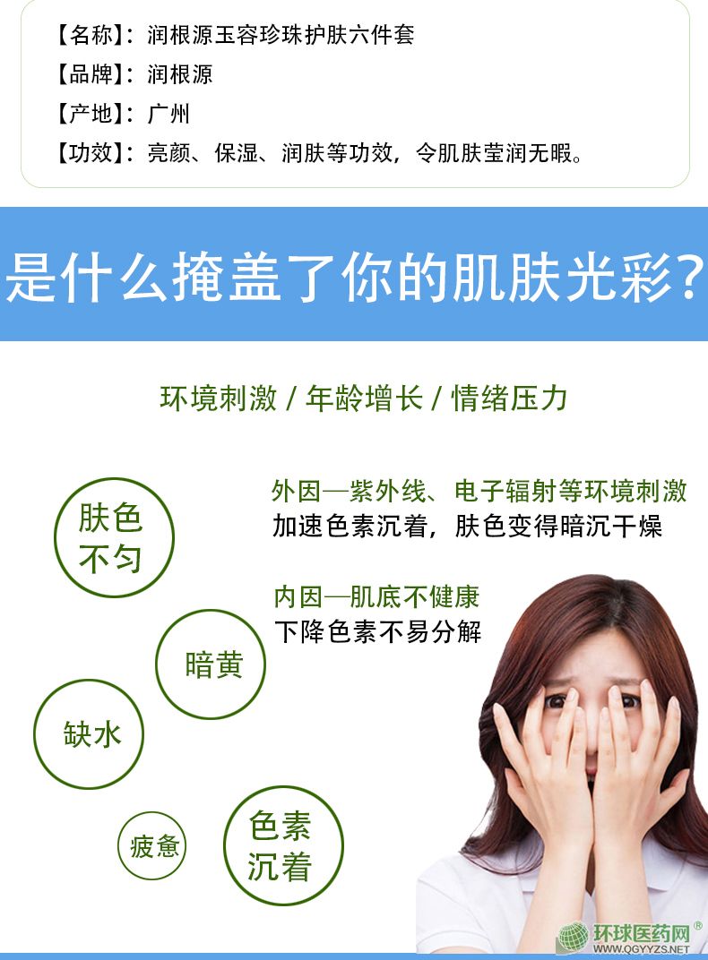 - 润根源玉容珍珠六件套 批准文号: 粤妆20160256规 格: 120g+100ml+120ml+35ml+30g+30g