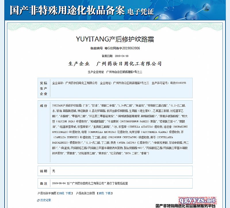 - YUYITANG产后修护纹路霜 批准文号: 粤G妆网备字2019063906规 格: 150g