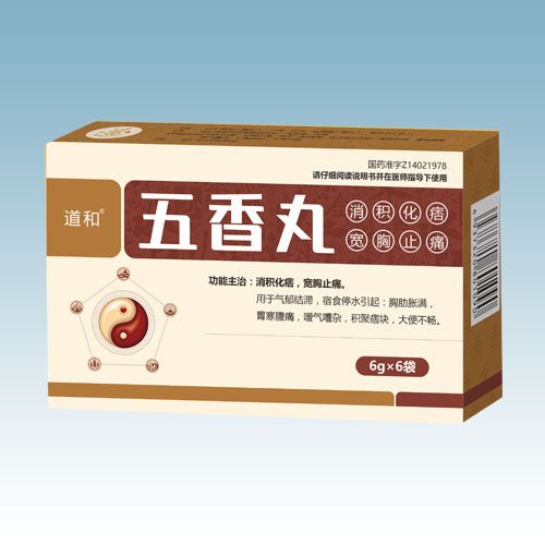 主要成分:香附(醋炙)、丁香、木香、五灵脂(醋炙)、牵牛子(炒)。