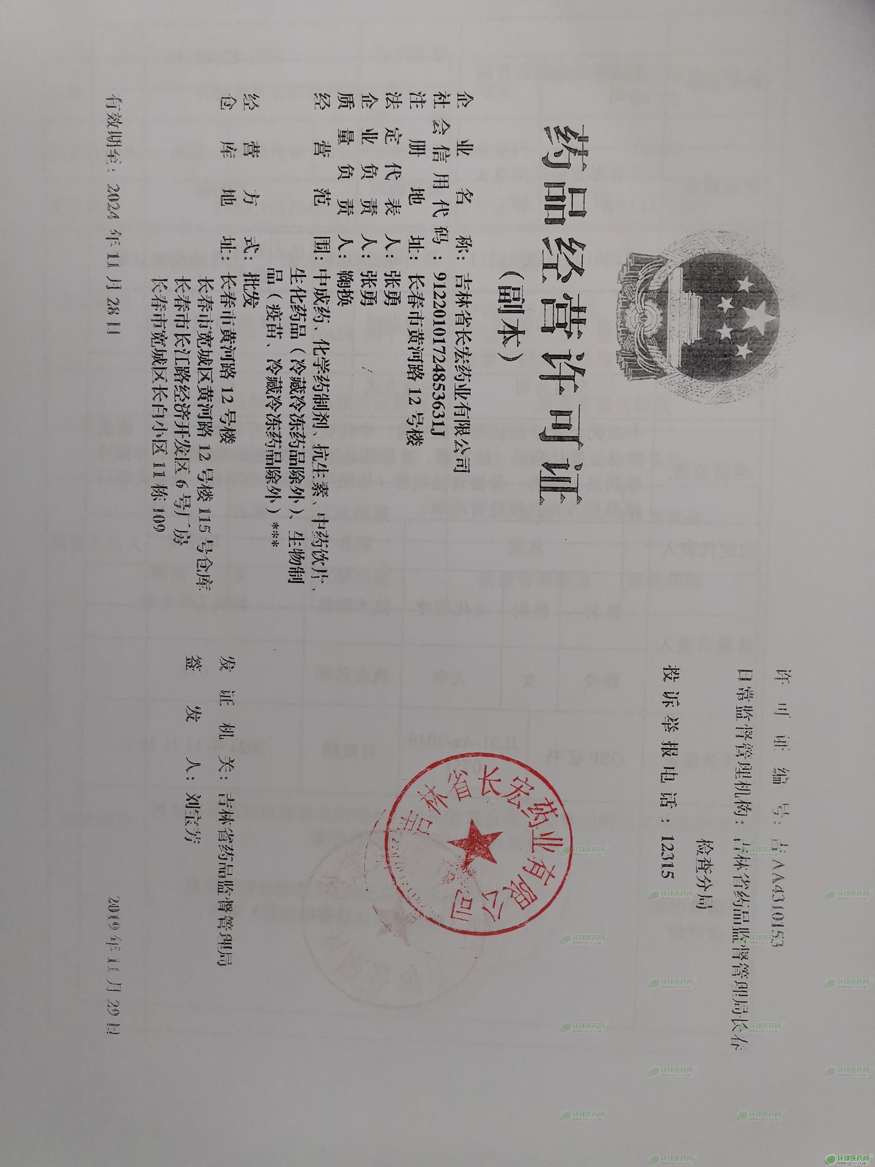 吉林省长宏药业有限公司,座落于物产丰富,幅源辽阔的东北大地上具有冰雪之都美称的吉林省省会—长春市,地处交通便利、经济繁华的医药批发集散地——长春市宽城区黄河路675号。公司凭借其雄厚的实力,现已将经营范围扩增至化学药制剂、抗生素、中成药、中药材、中药饮片、生物制品(除疫苗)、蛋白同化制剂、肽类激素,共七大类2千多个品种。是一家面对全国经营的新型医药企业,是具有独立法人的有限责任制公司,吉林省长宏药业有限公司以合格的质量,合理的价格为基础,优秀的营销团队,完善、系统的营销通路为依托,辐射全国二十多个省、市、自治区。赢得广大客户及消费者的信赖。公司本着“诚信、共赢、客户”的经营理念,与合作伙伴共赢天下!