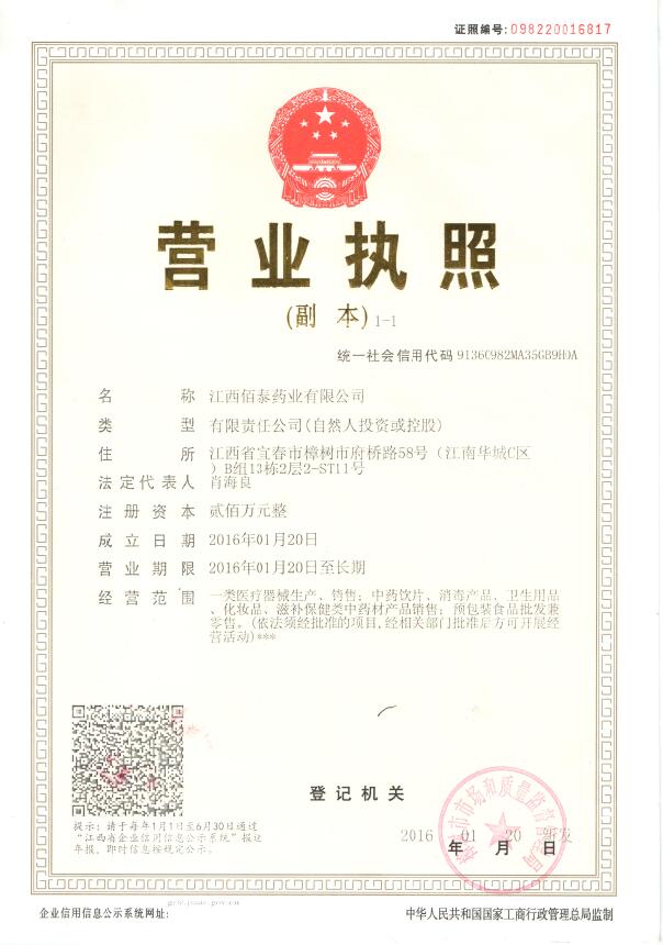 江西佰泰药业有限公司就生长在这神奇而又美丽的“中国药都”江西省樟树市,是一家集科研、开发、生产、经营为一体的现代化医药保健股份制企业。公司位于樟树市张家山工业园,占地面积10余亩,建筑面积五千多平方米,现有员工100余人,其中专业技术人员占员工总人数的50%。拥有30万级净化的外用消刹剂生产车间。凭借雄厚的技术力量和先进的生产设备,研制开发出优质的卫生消毒用品,畅销的产品有:斯卡德、药都虎、靓青春、爱惠哆等知名品牌,产品畅销全国各地,深受用户青睐。