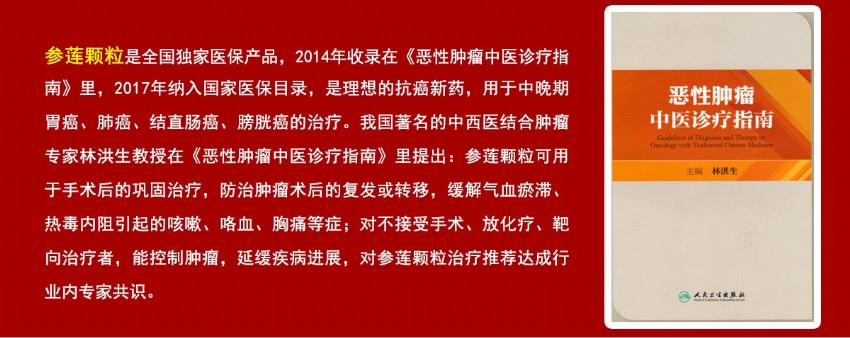 1.参莲颗粒为中药制剂,适合长期服用,尤其是化疗期间或化疗后出院患者继续服用,可巩固疗效延长生存期。
