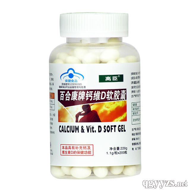 - 百合康牌钙维D软胶囊 批准文号: 国食健字G20090065规 格: 1.1g/粒*200粒