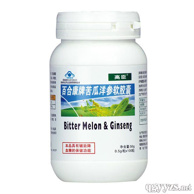 - 百合康牌苦瓜洋参软胶囊 批准文号: 国食健字G20100623规 格: 0.5g/粒*100粒