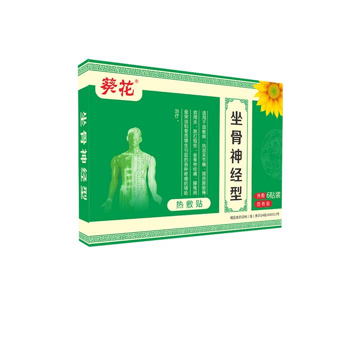 - 坐骨神经型热敷贴 批准文号: 湘岳食药监械(准)字2014第1640015号规 格: 6贴装