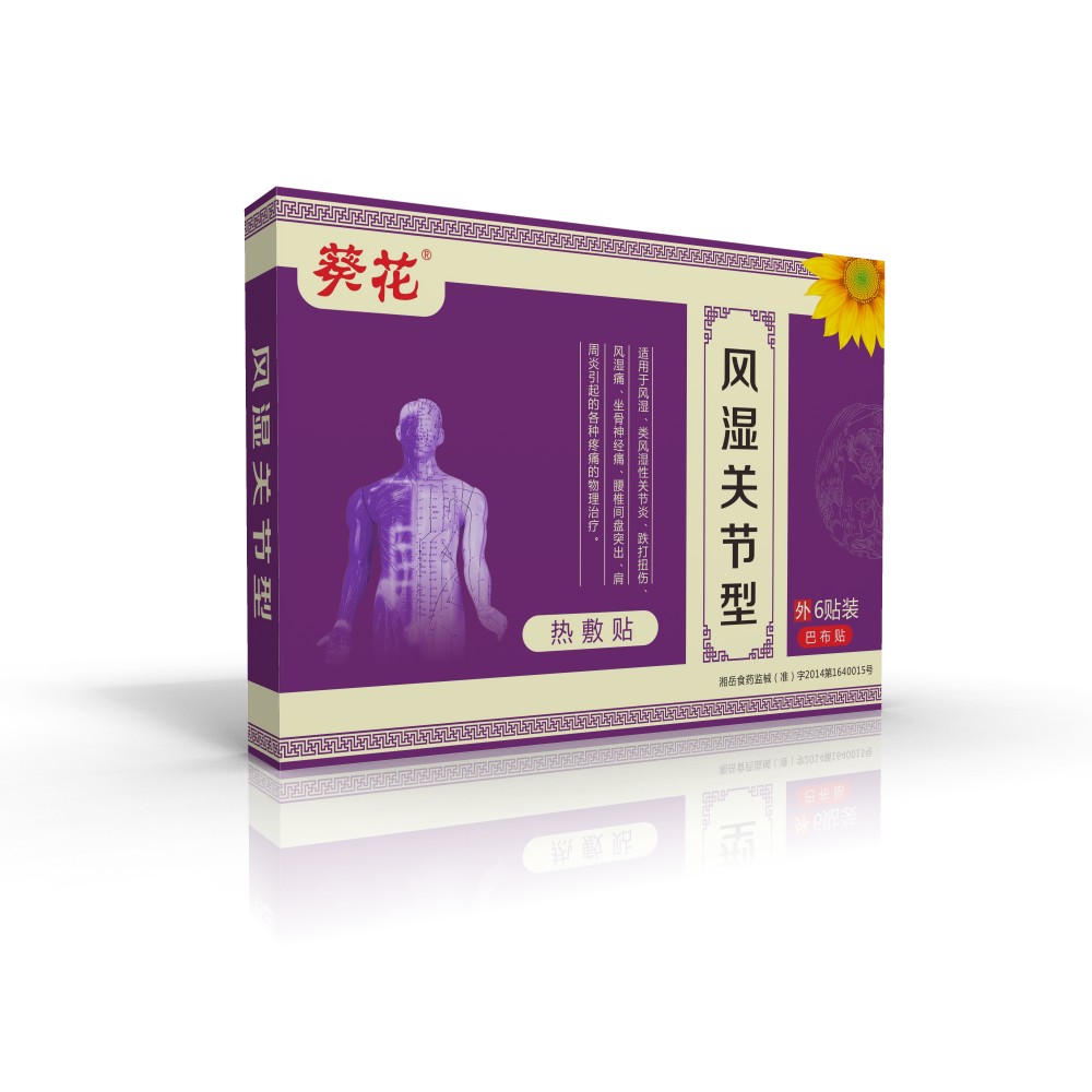 - 风湿关节型热敷贴 批准文号: 湘岳食药监械(准)字2014第1640015号规 格: 6贴装