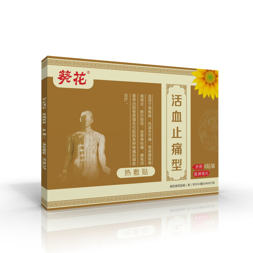- 活血止痛型热敷贴 批准文号: 湘岳食药监械(准)字2014第1640015号规 格: 6贴装