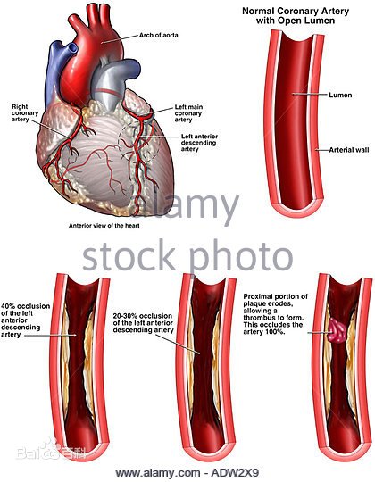 冠心病:冠状动脉粥样硬化性心脏病是冠状动脉血管发生动脉粥样硬化病变,进而引起血管腔狭窄或阻塞,从而造成心肌缺血、缺氧或坏死而导致的心脏病。在医学上常常被称“冠心病”。但是冠心病的范围还更广泛,还包括炎症、栓塞等导致管腔狭窄或闭塞。世界卫生组织将冠心病分为五大类:心绞痛、无症状心肌缺血、缺血性心力衰竭、心肌梗死和猝死。临床中常常分为急性冠状动脉和稳定性冠心病这两种综合征。