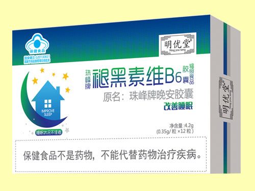 - 褪黑素维B6胶囊 批准文号: SC10636098210551规 格: 0.35克/粒*12粒