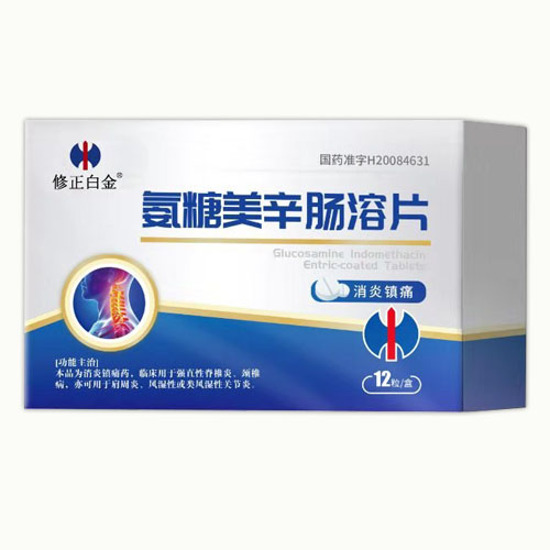 本品是由吲哚美辛和盐酸氨基葡萄糖按1:3的比例制成,每片含吲哚美辛25mg和盐酸氨基葡萄糖75mg,在体内发挥吲哚美辛和氨基葡萄糖的作用。吲哚美辛为非甾体类抗炎药,通过抑制前列腺素合成发挥解热、镇痛和抗炎作用;氨基葡萄糖进入体内后,刺激和恢复透明质酸和蛋白聚糖的生物合成,抑制巨噬细胞产生超氧自由基及对关节软骨有破坏作用的酶;并且能防止糖皮质激素对软骨细胞的损害及由某些非甾体类抗炎药物对前列腺素合成造成的不良影响,以及可减少损伤细胞的内毒性因子的释放。