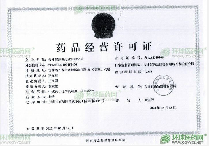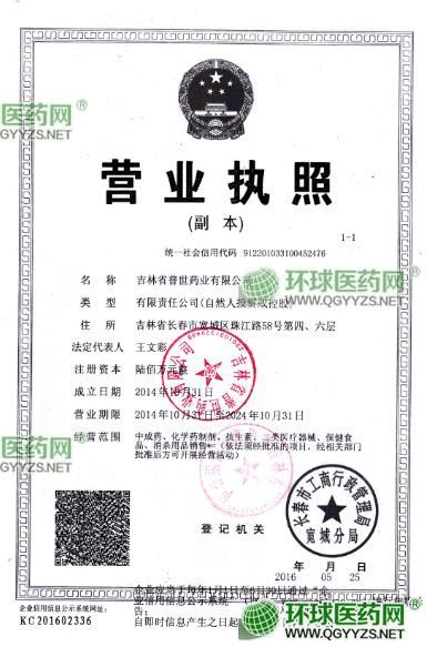 2015年06月01日吉林省食品药品监督管理局下发《药品经营许可证》,正式获得药品经营资格。