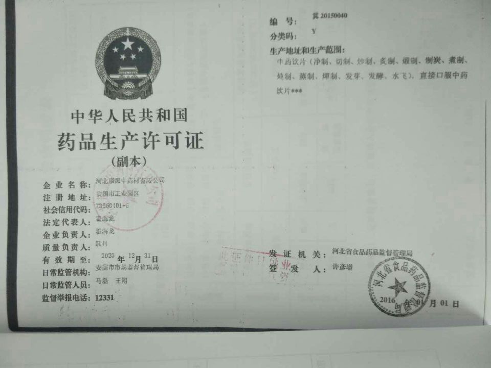 生产地址: 安国市工业园区