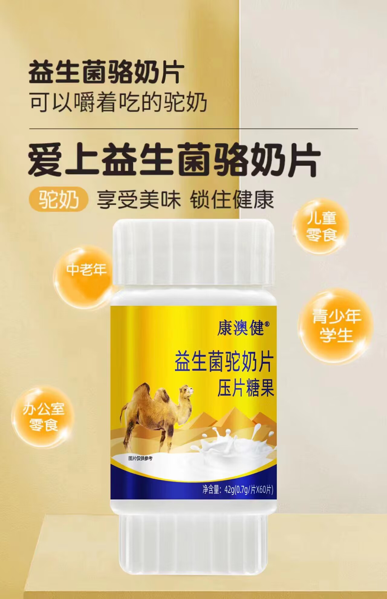 主要成份:食用葡萄糖、麦芽糊精、碳酸钙、硬脂酸镁、驼奶粉、乳双歧杆菌。