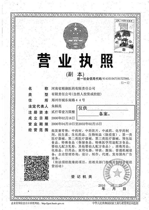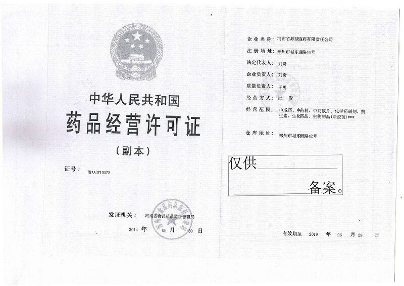 公司于2003年12月份顺利通过国家GSP认证。公司以诚信为本。连续多年被郑州市工商局授予“守合同,重信用”企业,被银行评定为AAA信用企业,历年被河南省消费者协会授予“3.15诚信服务单位”。又被河南省工商局授予“守合同,重信用”企业。科学的管理,规范的经营,得到了省市主管部门的肯定与支持。现已成为郑州市医药配送企业的主力军,受到了社会各界的关注。