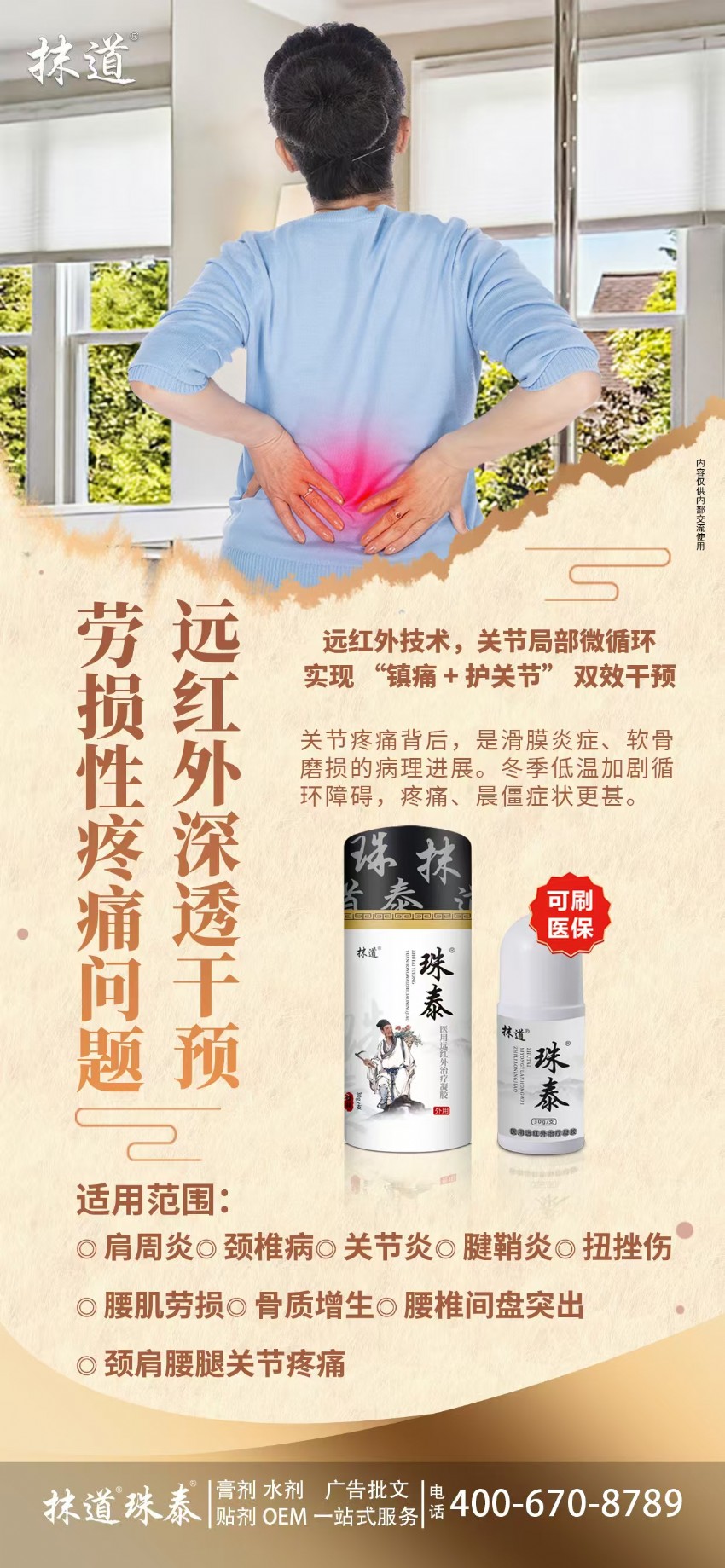 今天,我们特别为大家推荐两款适用于关节疼痛与劳损问题的优质产品——抹道®导光凝胶和珠泰医用远红外治疗凝胶。它们基于二类医疗器械标准打造,采用远红外深透技术,帮助缓解由肩周炎、颈椎病、关节炎、腰肌劳损等引起的肿、胀、痛问题。产品拥有正规医保编码,支持医保刷卡,质量可靠,使用更安心。