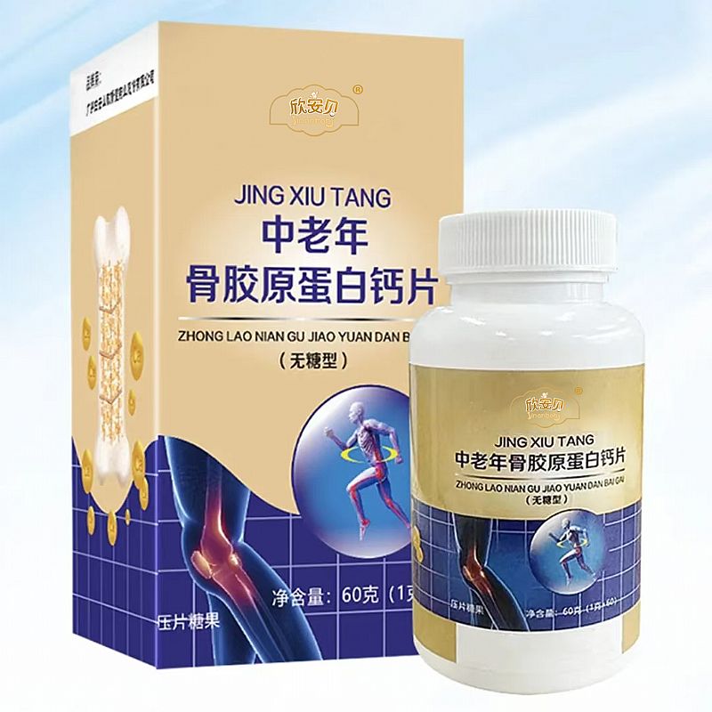 - 中老年骨胶原蛋白钙片 批准文号: SC785220001规 格: 详见说明书