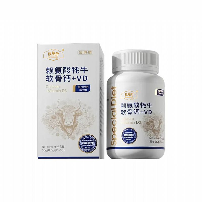 - 赖氨酸牦牛软骨钙+VD 批准文号: SC7430263规 格: 详见说明书