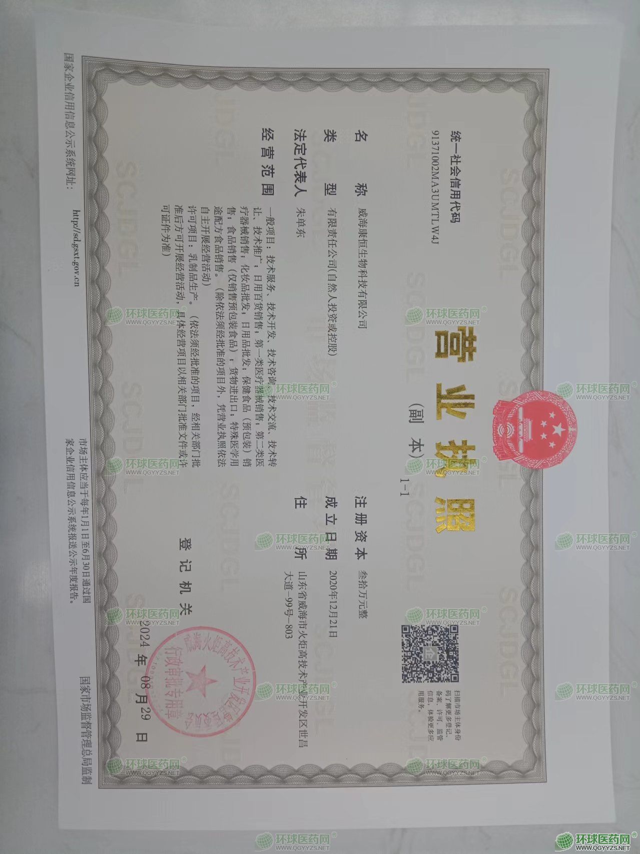 [企业法人]:保健品