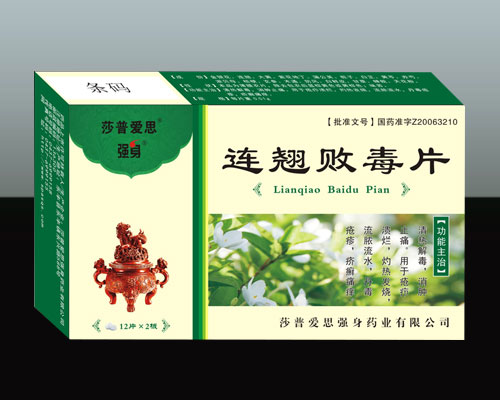 主要成分:桔梗、白芷、天花粉、大黄、浙贝母、紫花地丁、蒲公英、玄参、连翘、甘草、栀子、关木通、蝉蜕、金银花、防风、白鲜皮、赤芍、黄芩。