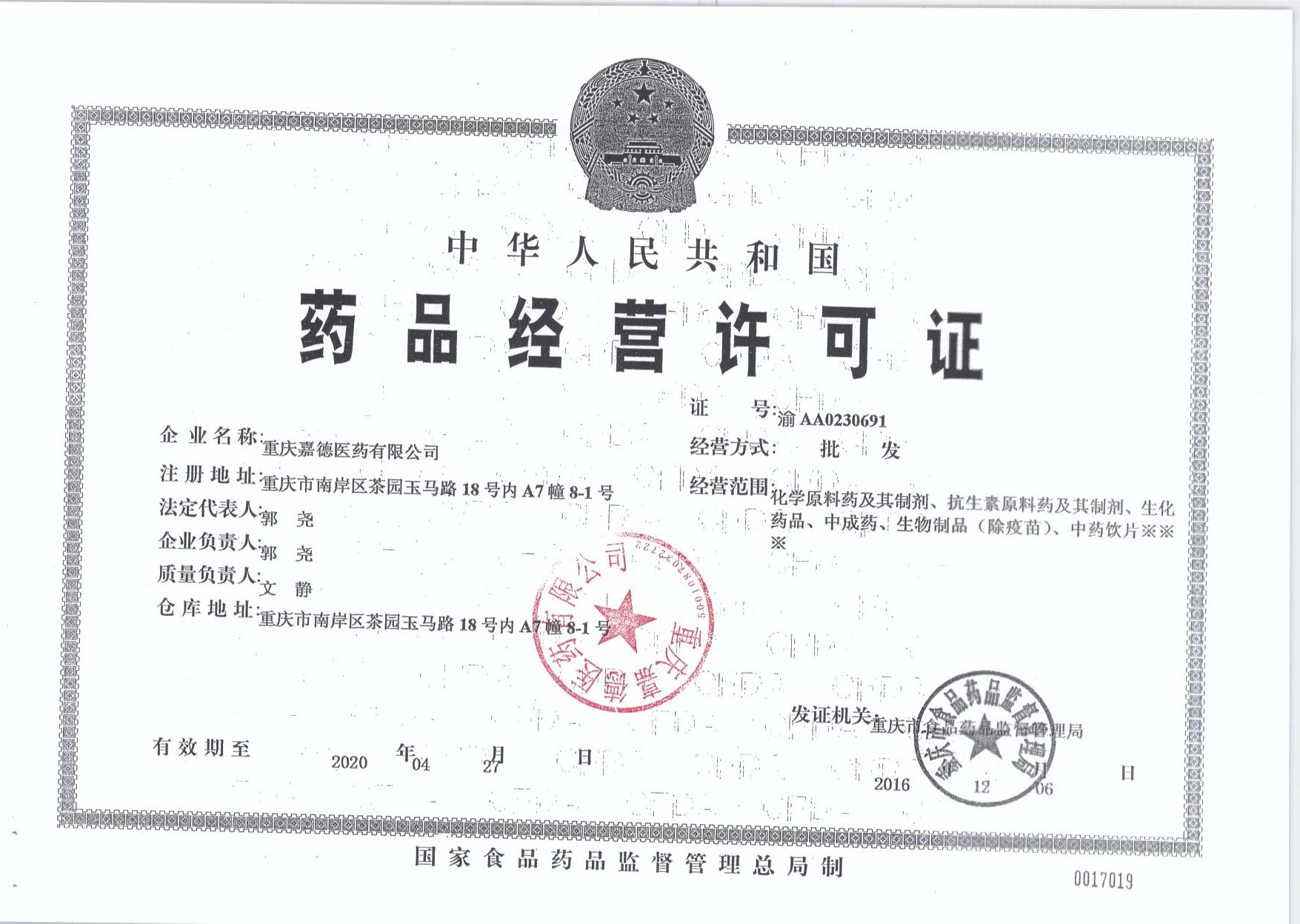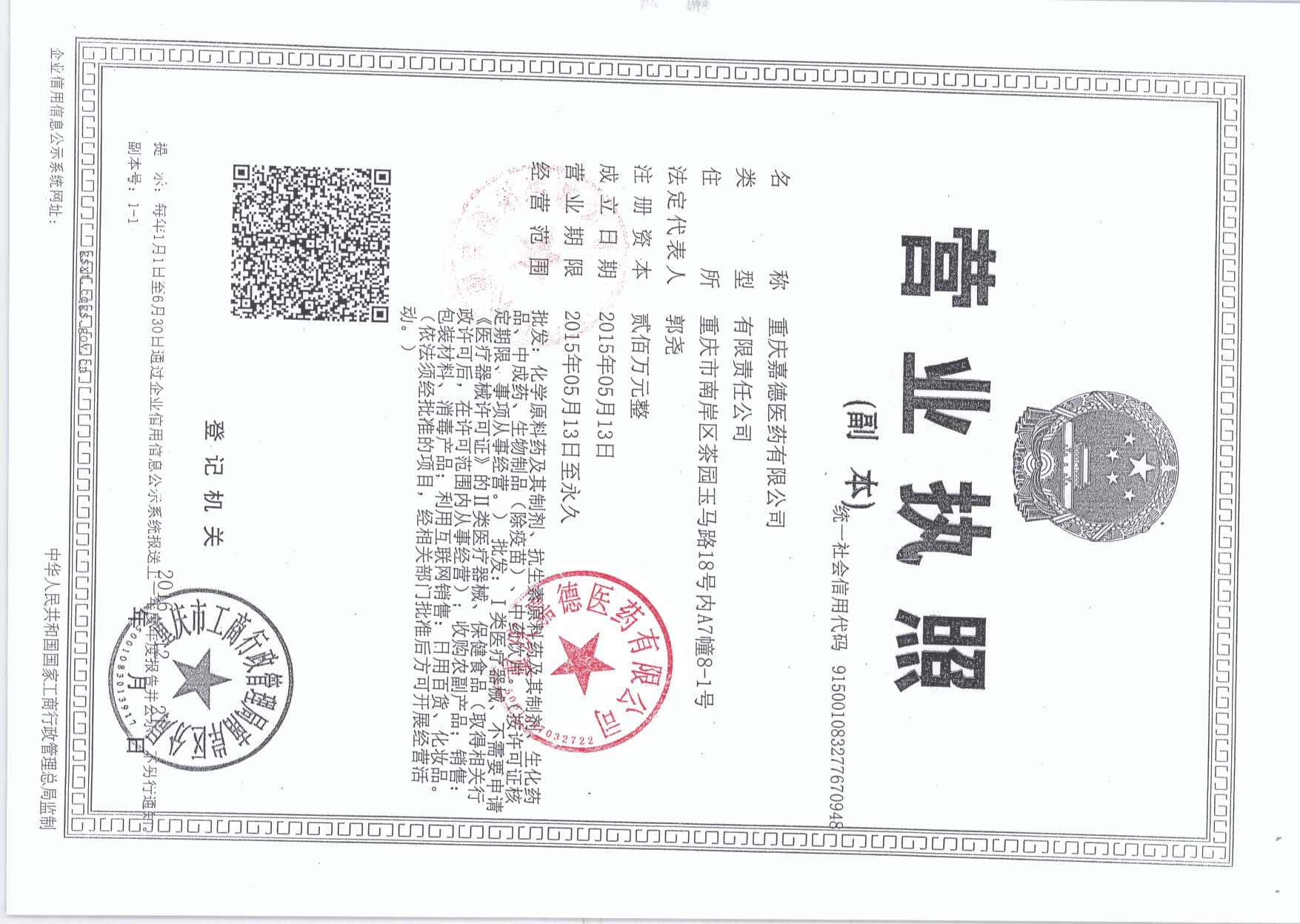 重庆嘉德医药有限公司办公室地址位于长江上游地区经济中心、金融中心重庆,重庆重庆市南岸区江桥路3-2号4号厂房层,于2015年05月15日在重庆市工商行政管理局南岸区分局经开区局注册成立,注册资本为200(万元),在公司发展壮大的3年里,我们始终为客户提供好的产品和技术支持、健全的售后服务,我公司主要经营批发:化学原料药及其制剂、抗生素原料药及其制剂、生化药品、中成药、生物制品(除疫苗)、中药饮片。(按许可证核定期限、事项从事经营。)批发:Ⅰ类医疗器械、不需要申请《医疗器械许可证》的Ⅱ类医疗器械、保健食品(取得相关行政许可后,在许可范围内从事经营);收购农副产品;销售:包装材料、消毒产品;利用互联网销售:日用百货、化妆品。(依法须经批准的项目,经相关部门批准后方可开展经营活动。)我们有好的产品和专业的销售和技术团队,我公司属于重庆医药保养公司行业,如果您对我公司的产品服务有兴趣,期待您在线留言或者来电咨询。