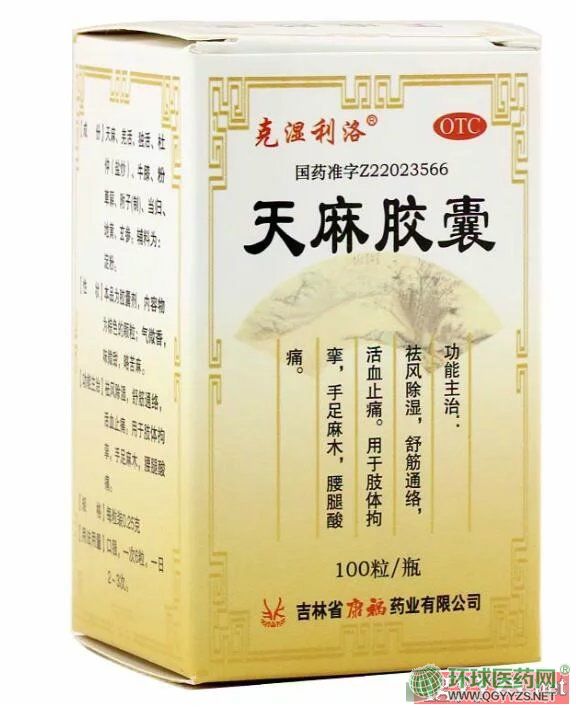 - 天麻胶囊克温利洛 批准文号: 国药准字Z22023566规 格: 每粒装0.25克