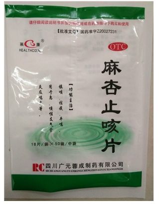 - 麻杏止咳片 批准文号: 国药准字Z20027231规 格: 薄膜衣每片重0.26克