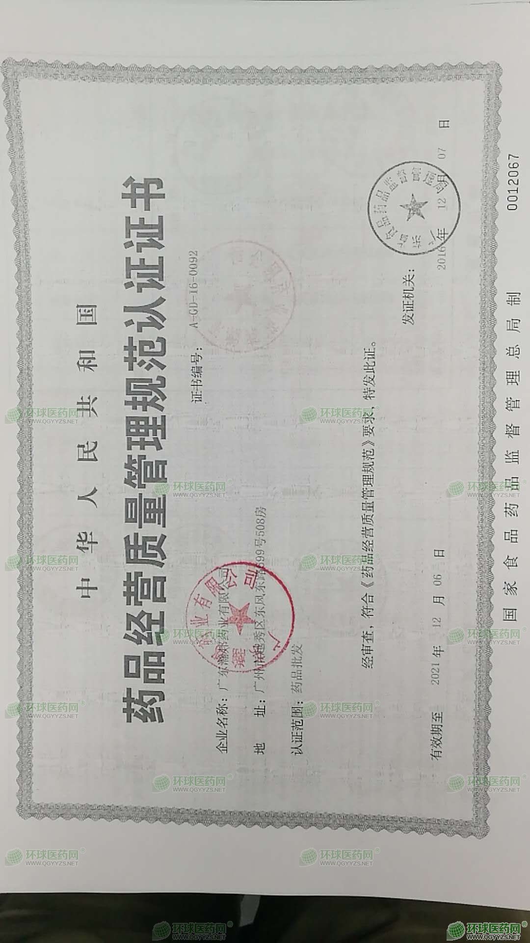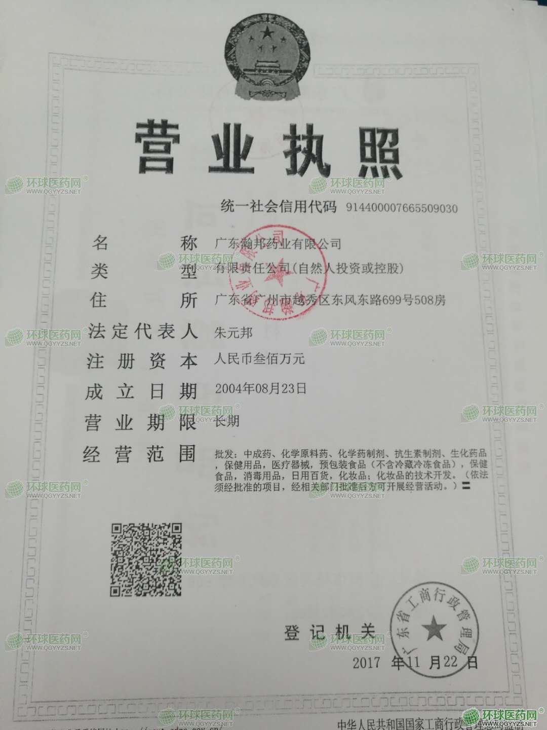 [企业法人]:广东瀚邦药业有限公司