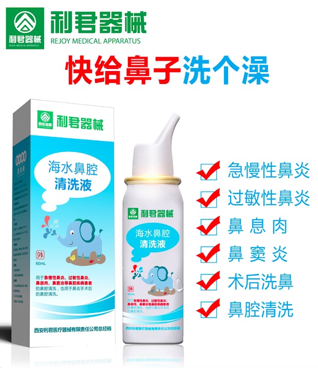 海水鼻腔清洗液由喷雾瓶和喷雾溶液{纯化水和海水组成,海水由(纯化水+海盐溶解制成)构成。可用于急慢性鼻炎、过敏性鼻炎、鼻息肉、鼻窦炎等鼻腔疾病患者的鼻腔清洗,也用于鼻炎手术后的鼻腔清洗。