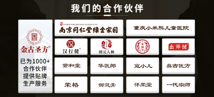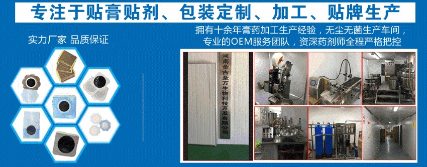 金古圣方:源头膏药贴厂家,可OEM贴牌生产,可代理,支持疼痛贴、老黑膏、疼痛膏、小儿贴、蜂蜜贴包装定
