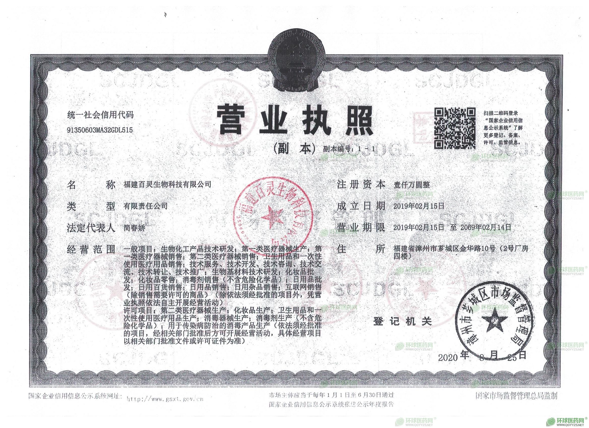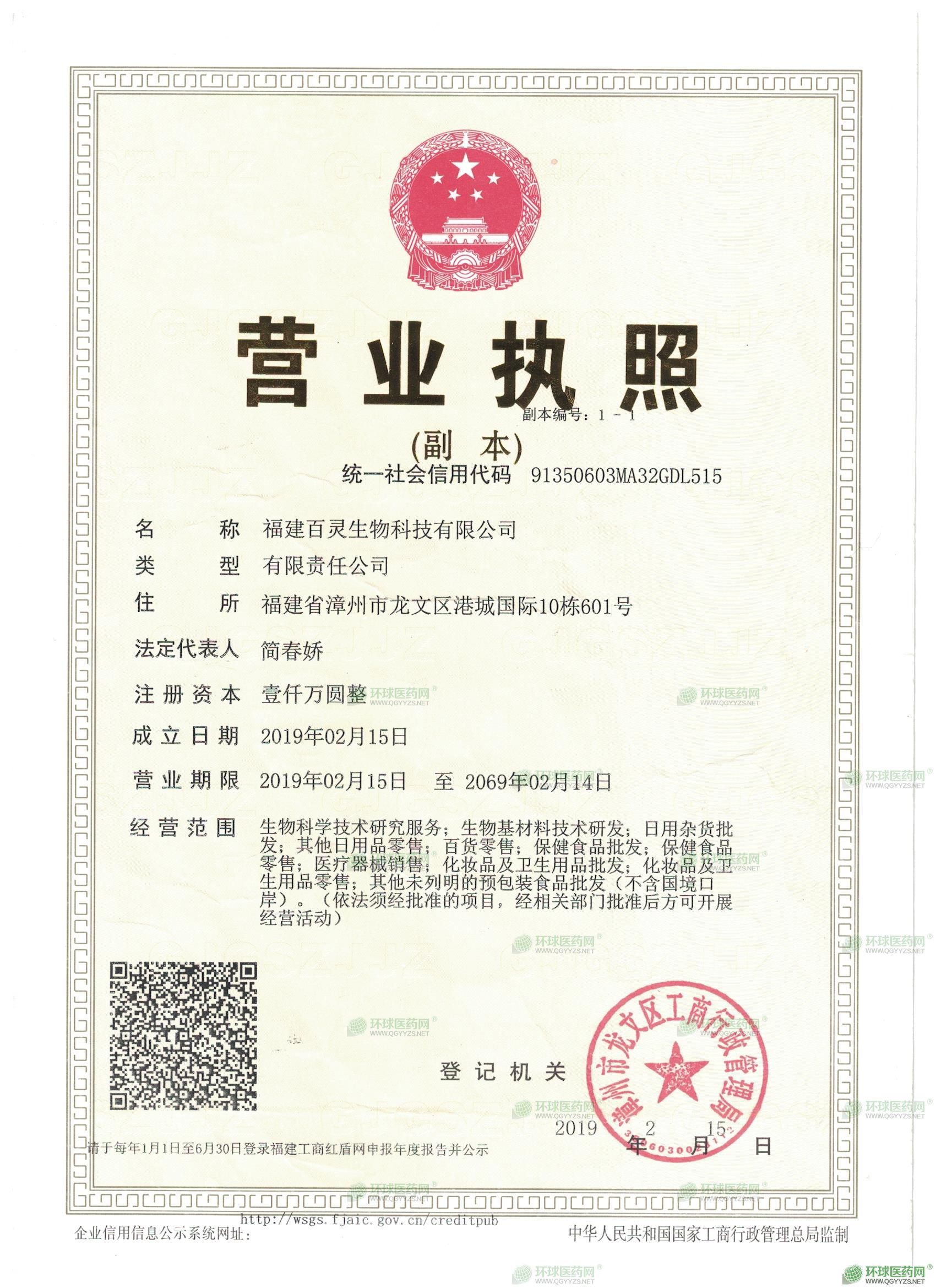福建百灵生物科技有限公司成立于2019年02月15日,注册地位于福建省漳州市芗城区金华路10号(2号厂房四楼),法定代表人为简春娇。经营范围包括:**类医疗器械研发、生产和销售。
