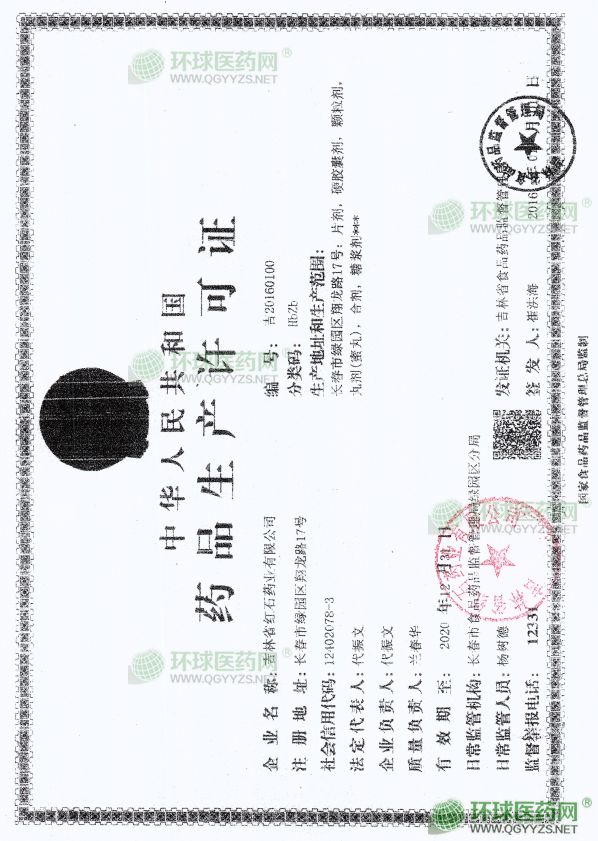 吉林省红石药业有限公司,始建于1986年。于2003年GMP改造搬迁至长春市绿园区翔龙路17号,新厂区占地面积11222平方米,建筑面积13096平方米。其中办公楼1栋,生产车间1栋,提取车间1栋,仓库1栋,消防水泵房1栋,绿化面积达到30%,现有员工150人,其中技术人员占员工总数的30%。厂区完全按照GMP规范设计,建筑、绿化、是理想的生产办公场所。