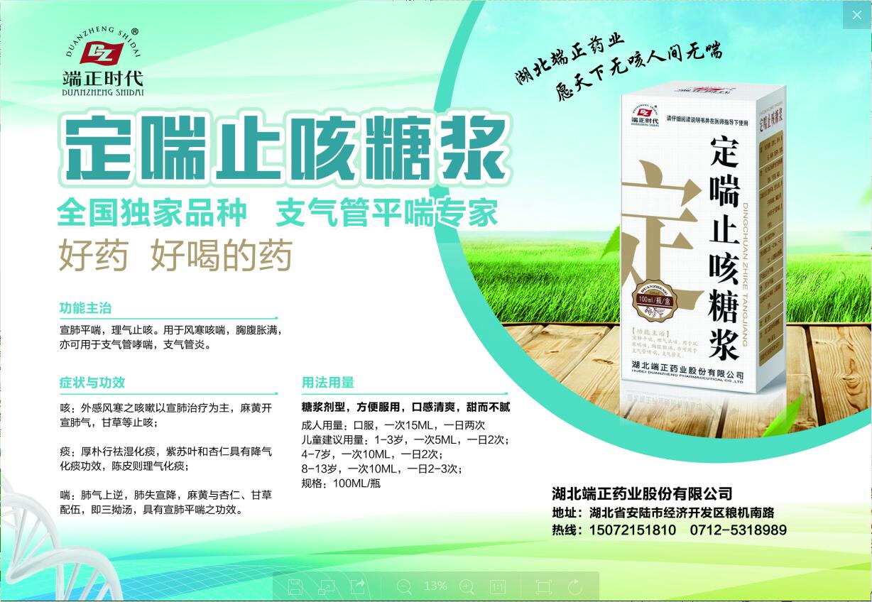 定喘止咳糖浆(批准文号: 国药准字Z20163037)