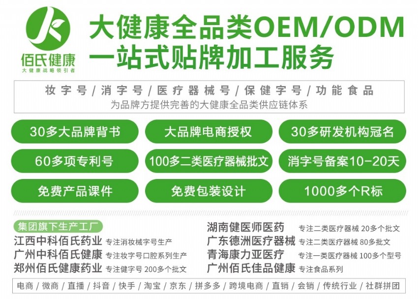 100+医疗器械批文,功效/包装/剂型定制,佰世健康,电商/微商/网红爆品均可OEM