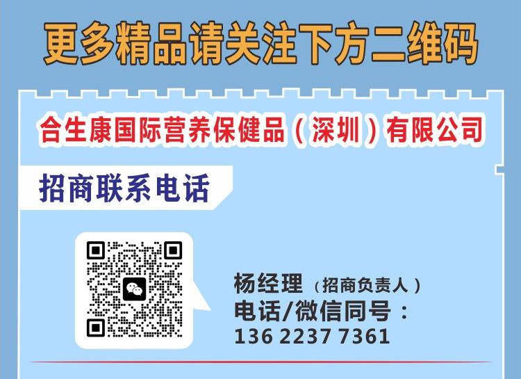目前,合生康国际营养保健品(深圳)有限公司的相关产品,正在环球医药网面向全国进行招商,有意向的代理商可通过以下方式与厂家取得联系,治谈合作!