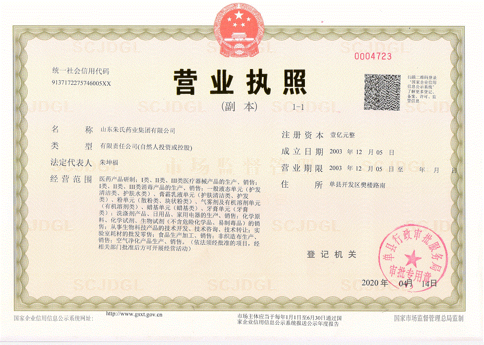 山东朱氏药业集团是一家集贴膏、医疗器械、化妆品、保健食品、生物试剂新药研发生产与销售、高分子材料研发、房地产开发、物流配送、企业培训为一体的大型综合型企业集团。集团组建于2003年12月,总注册资金达1.5亿元,现有员工2000多人,年产值近5亿元。集团旗下拥有子公司12家,涉及有医药、医疗器械、房地产、企业咨询管理培训等数十个领域,其中贴膏贴剂主营产品包括妇科、儿科、风湿骨病等贴敷类产品,年生产能力达8亿片以上。公司坚持走科技创新之路,依靠我们创立的知识产权的高科技产品,来**公司的可持续发展,公司高度重视以市场为导向,具有前沿技术的研发能力,公司有专业科研机构和人员从事创新的研究和开发工作。公司已获国家发明专利九项、国家实用新型专利三十六项、山东省优秀技术创新成果三等奖两项、市科学技术进步奖二等奖五项、市科学技术进步奖三等奖十项。公司培养了一批专业的技术研发人员和管理干部,优化了企业产业结构,确立了企业在行业中的龙头地位。现有自主研发产品中拥有多项发明专利技术和应用,增强了企业竞争力,对我国外用医疗器械行业结构调整和相关产业发展起到了一定的拉动和良好示范导向作用。近期又研发成功一些医用高分子产品:医用水凝胶眼贴、阴道填塞凝胶、疤痕贴、宫腔组织吸引管套装、正压接头、壳聚糖创伤液体敷料、留置针、系列导管等产品,具备10万级局部万级的净化车间及配套检验设施。