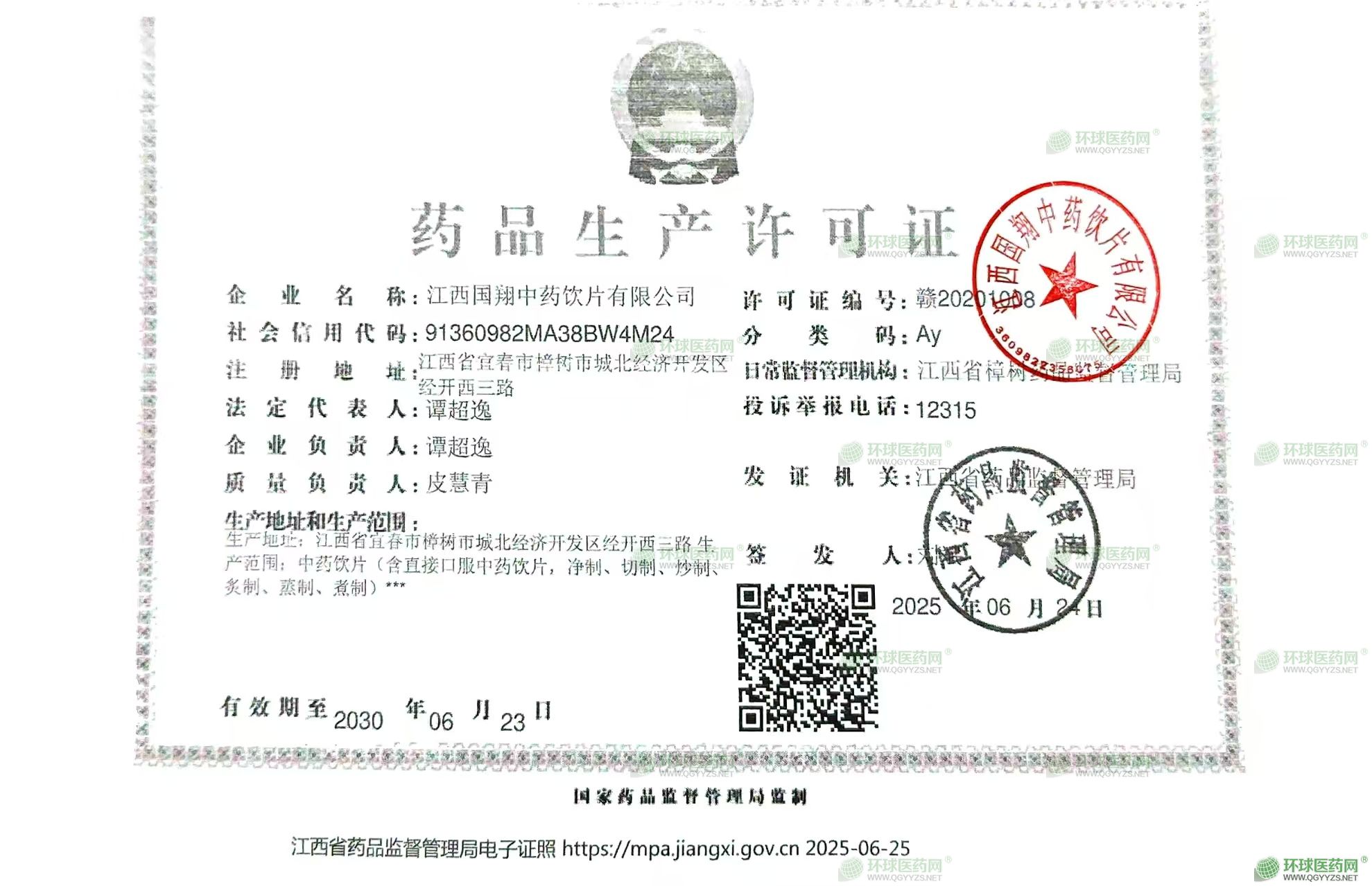 生产地址: 江西省宜春市樟树市城北经济技术开发区清江北二路