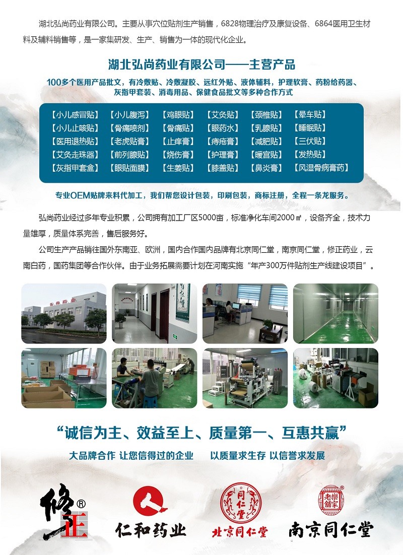 湖北弘尚药业依托政策优势与成熟的一站式代工体系,诚邀渠道商、品牌方及健康机构共建贴敷产品生态。选择我们,您将获得: