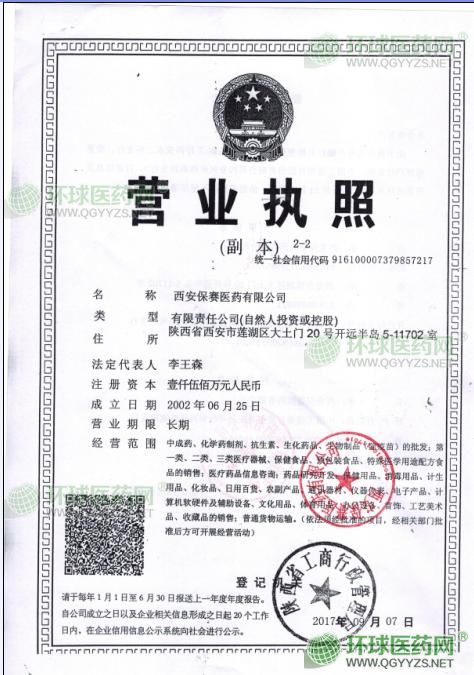 西安保赛医药有限公司成立于2002年6月。2016年3月改制以后,主要是一家从事中成药、化学药制剂、抗生素、生化药品、医疗器械、新特药产品、新的体外诊断试剂、耗材等产品总代理为主的专业化推广公司,2017年已通过新版GSP认证。