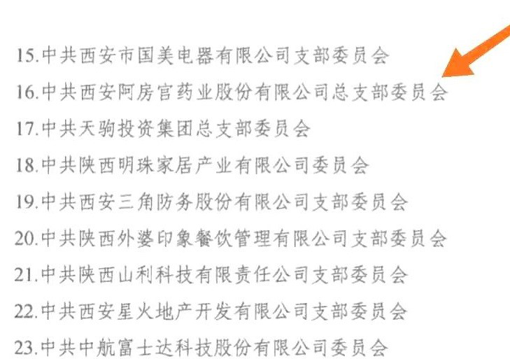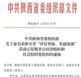 近日,中共陕西省委组织部发布关于命名表彰全省“评星晋级、争创双强”活动五星级非公经济组织和社会组织党组织的通知,按照“党组织班子好、党员队伍好、生产经营好、企业文化好、劳动关系好、社会评价好”的标准,西安阿房宫药业股份有限公司党总支成功评定为“五星级党组织”。