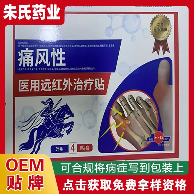 - 痛风性医用远红外治疗贴贴牌加工手足腿痛 批准文号: 辽械注准20252200092规 格: 9cm×11cm×1贴×2袋