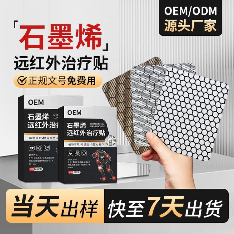 - 厂家oem石墨烯膏药贴发热膏颈肩筋骨贴弹力布远红外 批准文号: 晋械注准20252090127规 格: 9cm×11cm×1贴×2袋