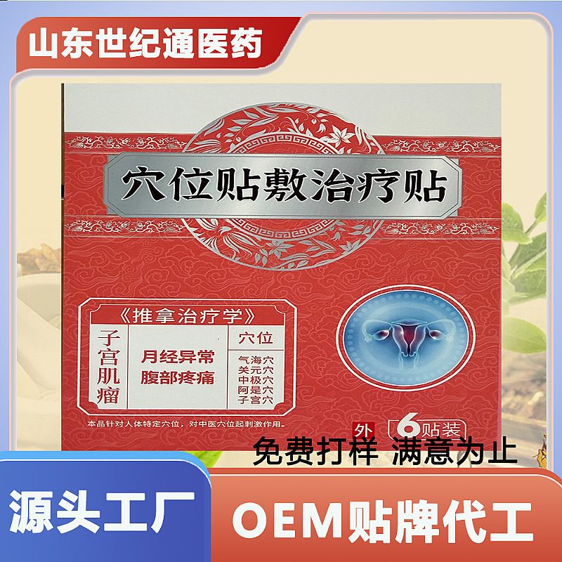 - OEM贴牌代工妇科贴剂子宫肌瘤穴位贴敷治疗贴 批准文号: 鲁械注准20152090314规 格: 9.5cm X 13cm X 1贴 X 2袋