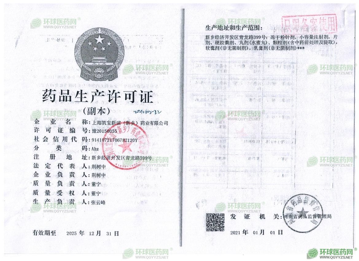 上海凯宝新谊(新乡)药业有限公司系上海凯宝药业股份有限公司全资子公司。位于新乡经济开发区,占地面积121166.32㎡,总资产3.2亿元,固定资产1.2亿元。主要剂型有冻干粉针剂、小容量注射剂、片剂、胶囊剂、颗粒剂、丸剂、乳膏剂等8个剂型,共113个品种。主要产品有注射用硫普罗宁、硫普罗宁肠溶片、注射用硫普罗宁钠、芪参胶囊、复方丹参片、山海丹胶囊、斑秃丸、双氯芬酸钠肠溶片、人工牛黄甲硝唑胶囊、通脉颗粒、克霉唑软膏、红霉素软膏,以及“元满”牌保健酒等。