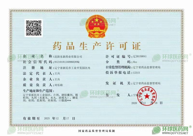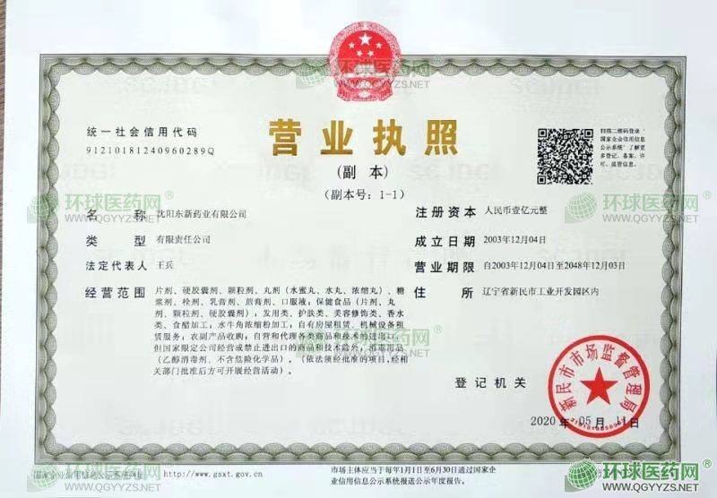 沈阳东新药业有限公司成立于2003年12月04日,注册地位于辽宁省新民市工业开发园区内,法定代表人为王兵。经营范围包括片剂、硬胶囊剂、颗粒剂、丸剂(水蜜丸、水丸、浓缩丸)、糖浆剂、栓剂、乳膏剂、煎膏剂、口服液;保健食品(片剂、丸剂、颗粒剂、硬胶囊剂);发用类、护肤类、美容修饰类、香水类、食醋加工;水牛角浓缩粉加工;自有房屋租赁、机械设备租赁服务;农副产品收购;自营和代理各类商品和技术的进出口,但国家限定公司经营或禁止进出口的商品和技术除外;消毒用品(乙醇消毒剂、不含危险化学品)。(依法须经批准的项目,经相关部门批准后方可开展经营活动)。沈阳东新药业有限公司对外投资2家公司,具有1处分支机构