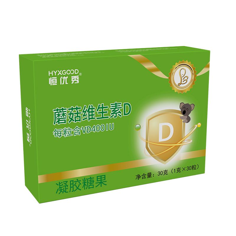 - 恒优秀蘑菇维生素D凝胶糖果 批准文号: SC12733070201972规 格: 30克(1克x30粒)
